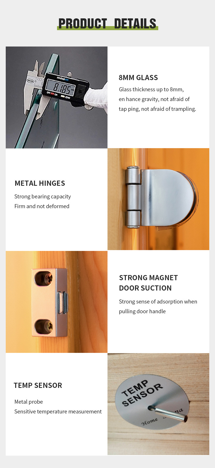 Həssas Temperatur Sensoru: 1-3 nəfərlik taxta İnfraqırmızı və Buxar Sauna Otağı həssas temperaturun ölçülməsinə imkan verən metal prob temperatur sensoru ilə təchiz edilmişdir. Rahat bir təcrübə üçün saunanın temperaturunu hər zaman izləyə və tənzimləyə bilərsiniz.