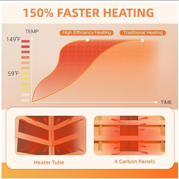 【Səmərəli istilik texnologiyası】 4 karbon paneli və 1 karbon borusu ilə təchiz olunmuş, 1 nəfər infraqırmızı sauna, hətta istilik paylamasını təmin edən 360 dərəcə ətraf mühit istilik təmin edir. Tipik olaraq, bu, yalnız 10-15 dəqiqə ərzində qızdırılır, bu da sauna təcrübənizi təxirə salmadan zövq almağa imkan verir.