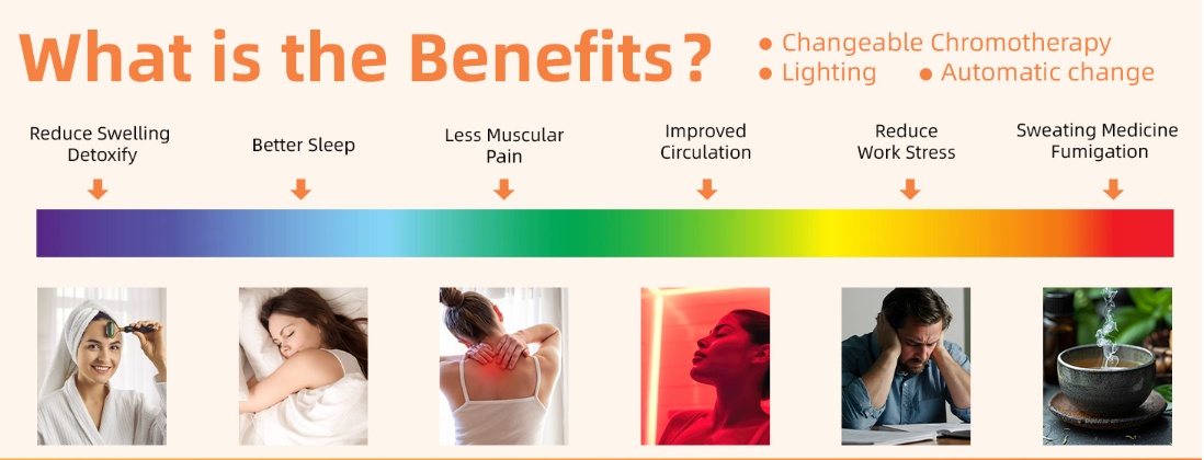 İstifadə edildikdə, uzaq infraqırmızı radiasiya qan dövranını təbliğ edə, metabolizmanı sürətləndirə, əzələ yorğunluğunu aradan qaldırır və bədəndən nəm və metabolik tullantıların, idman həvəskarları, idman həvəskarları və gündəlik sağlamlığa diqqət yetirənlər üçün uyğun olanlar. Ənənəvi saunalarla müqayisədə daha az enerji istehlak edir (təxminən 800-1200w gücü ilə), tez qızdırılır (müəyyən bir temperaturu 10 dəqiqə ərzində) və mürəkkəb drenaj sistemləri tələb etmir. Gündəlik baxım sadədir, müasir şəhərlilərə rahat və səmərəli ev sağlamlığı həlli ilə təmin edir.