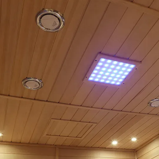 3. İstilik və İşıqlandırma Təcrübəsi: Bərabər paylanmış uzaq infraqırmızı istilik panelləri yumşaq, nüfuz edən istilik verir; üst + yan ətraf işıqları (isti tonlarda) rahatlamağı artırır və tıkanıklıq və təzyiqdən qaçın