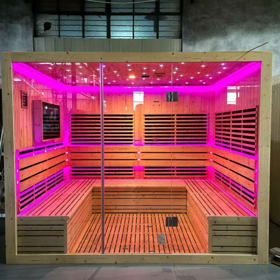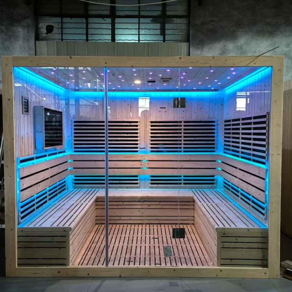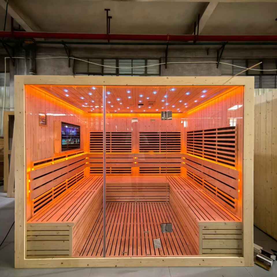 Qrup istirahət, ictimailəşmə və ya kommersiya istifadəsi üçün geniş və lüks sauna həlli axtarırsınız? 5-10 nəfərlik Sauna Wood Wood Wood Wood LCD TV ilə infraqırmızı sauna otağı ehtiyaclarınıza cavab vermək, mükafat materialları, qabaqcıl texnologiyalar və insan mərkəzli dizaynı inteqrasiya etmək üçün uyğunlaşdırılır.