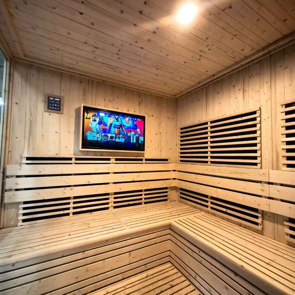 Daxili LCD TV (görüntüdə görünən) sauna təcrübəsini dəyişdirir: