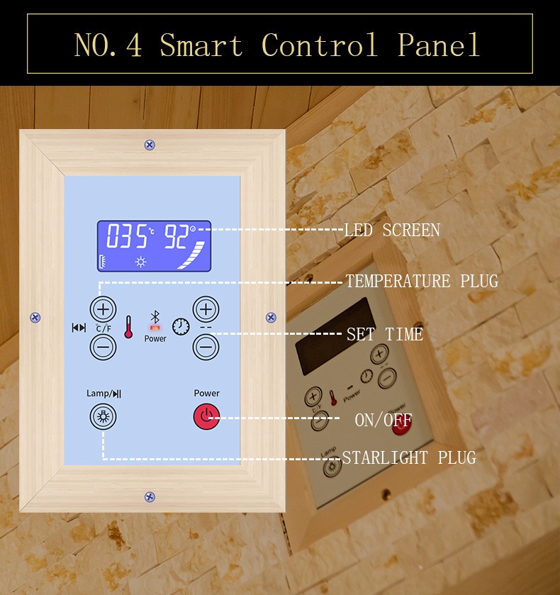 - Temperatur sensoru: Saunanın yan divarına quraşdırılıb ki, müxtəlif ərazilərdə temperatur dəyişikliklərini dəqiqliklə qeyd etsin və vahid istiliyi təmin etsin.