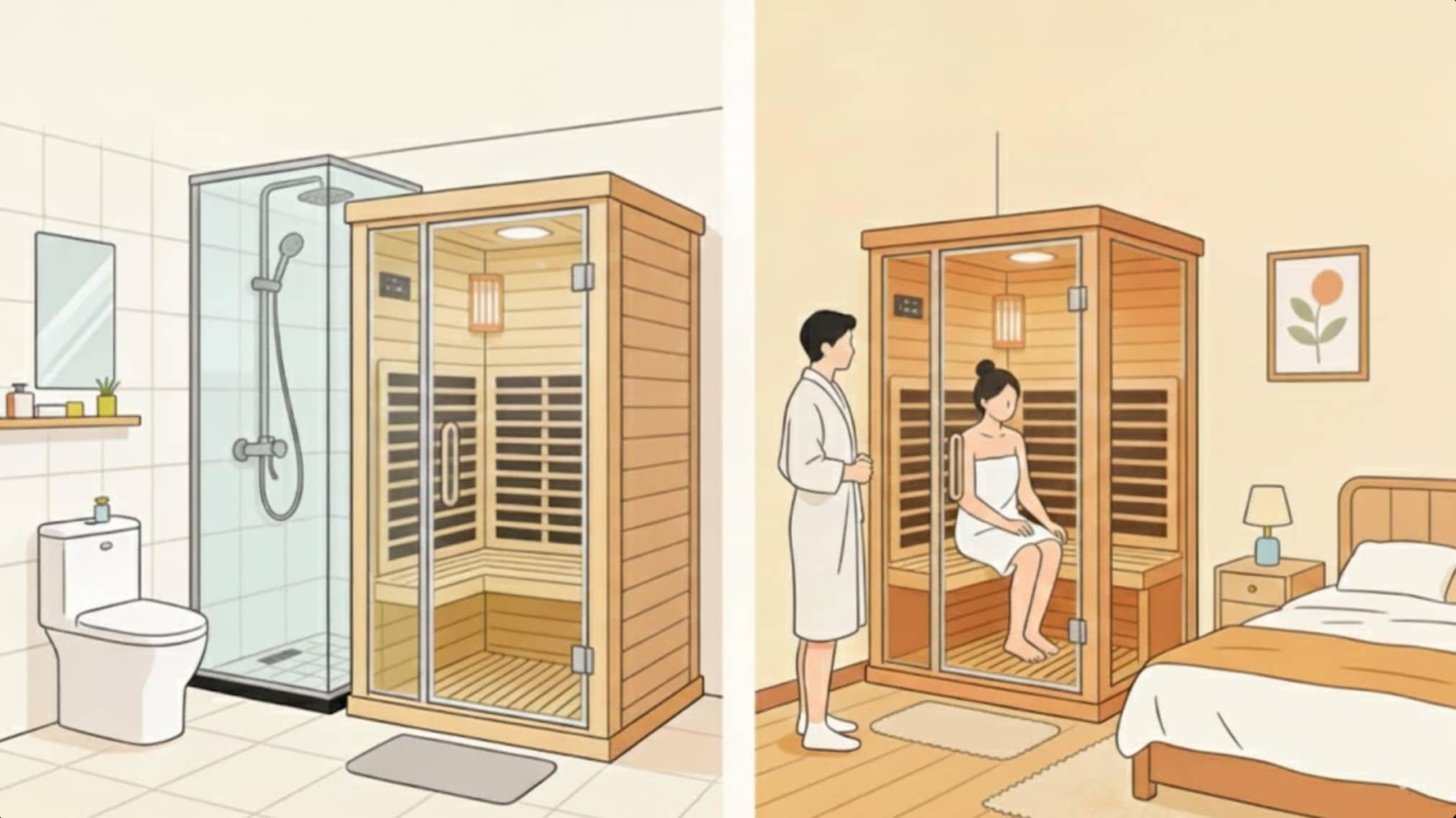 Saunaların iki növü qarşılıqlı olaraq eksklüziv deyil və seasonlara görə birləşmələrdə istifadə edilə bilər, yayda çox infraqırmızı saunalar (quru və qeyri-rütubətli, nəmli istiliyin üstündən qaçınmaq); Qışda buxar saunalarından istifadə edin (isti və nəmləndirici). Şərtləri olan ailələr "qismən təmir + çevik əlavələr" planını qəbul edə bilərlər: Hamamda buxar sauna modulunu quraşdırın və sağlamlıq ehtiyaclarını artırmaq üçün yataq otağında kiçik bir infraqırmızı sauna qoyun və kiçik bir infraqırmızı sauna qoyun.