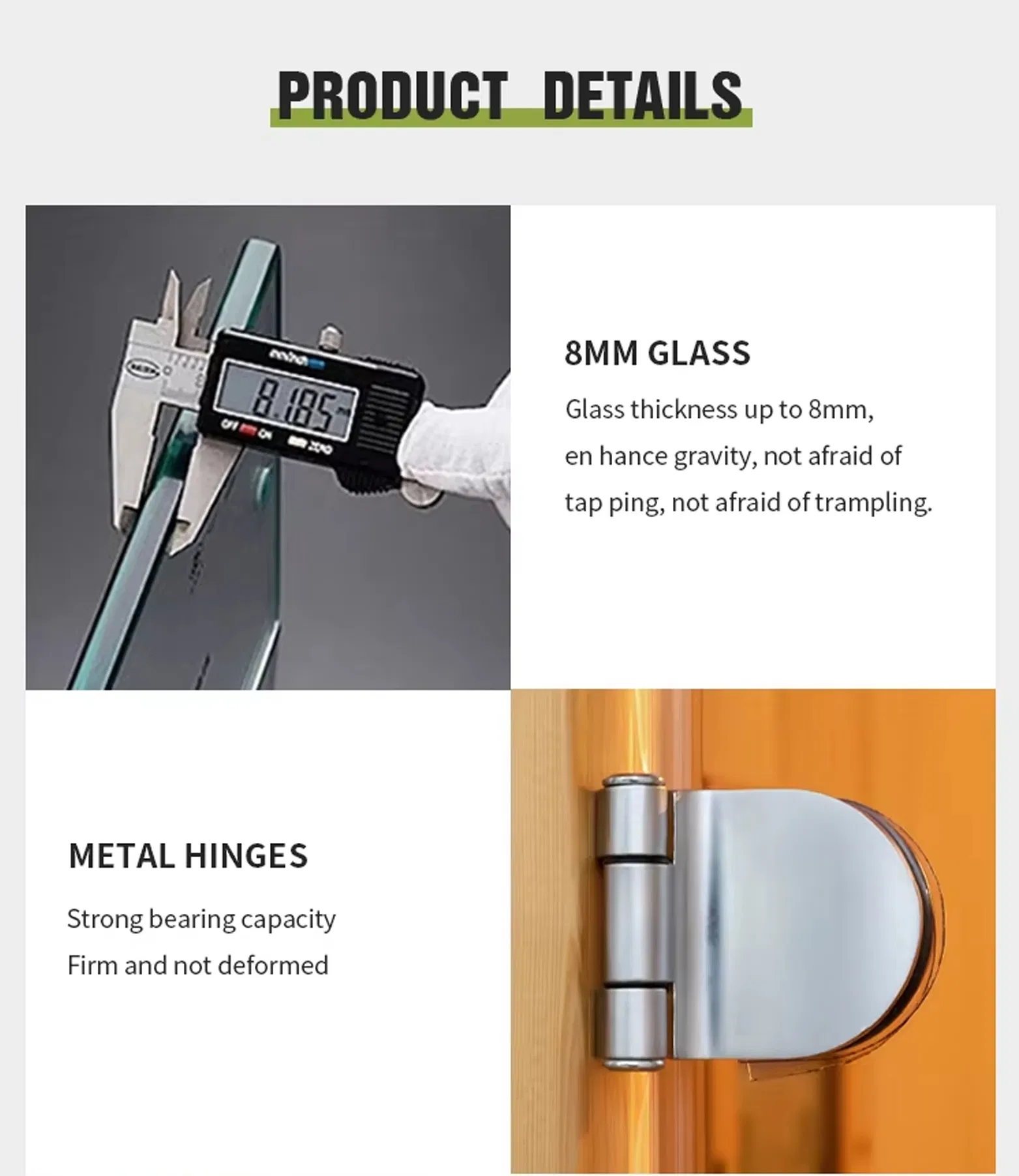✅Otel-Keyfiyyətli Davamlılıq – Gündəlik istifadəyə tab gətirmək üçün 8 mm temperli şüşə, ağır işlərə davamlı menteşələr və maqnit qapı kilidləri ilə gücləndirilmişdir.